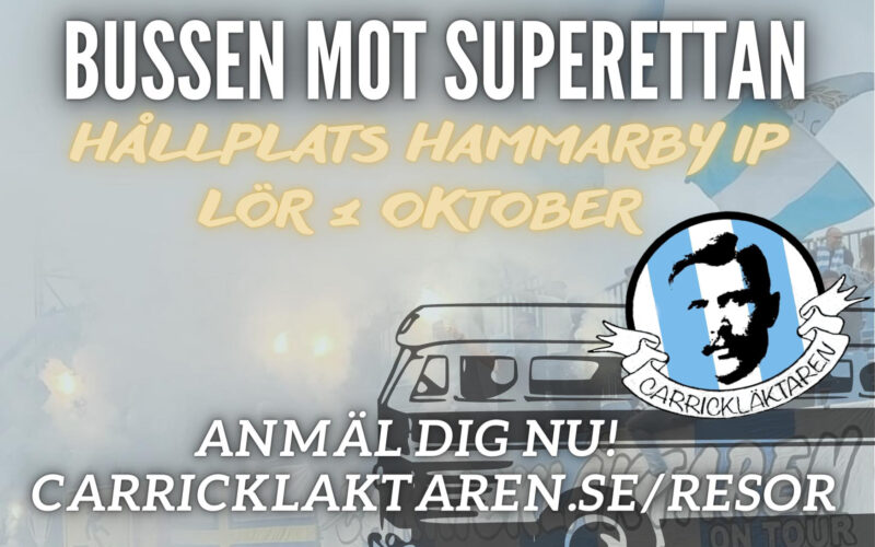 Njut, skin och häng med på resan! Nästa stopp för Carrickbussen mot Superettan är Hammarby IP/Kanalplan lördagen den 1 oktober.